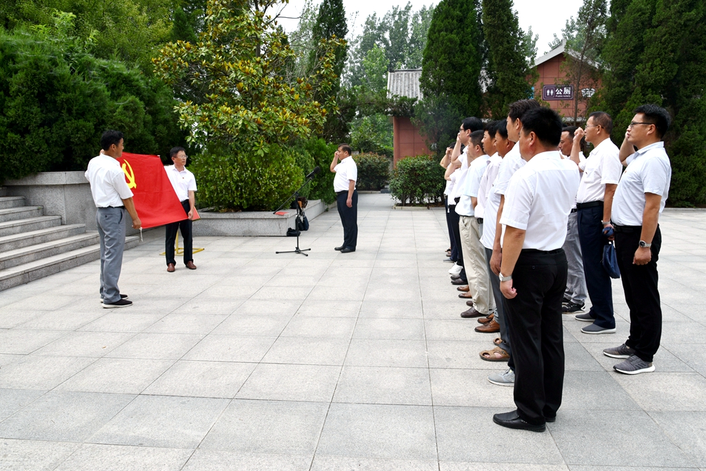 寿县革命烈士陵园是安徽省第一个党支部“中共小甸集特支”诞生地,也是早期革命的发祥地,众多先烈的故乡,雄伟的寿县革命烈士纪念塔建立在这里,是安徽省红色教育基地之一。上午,全体人员来到革命烈士陵园。鲜花敬英雄,浩气存天地。首先,公司党委向革命烈士纪念碑敬献花篮,表达对革命烈士的深切敬意。接着在雄伟的革命烈士纪念碑前,全体党员庄严重温入党宣誓仪式,唤起入党时初心记忆。随后瞻仰革命烈士事迹陈列室,一张张照片,一幅幅资料,把我们带回那段峥嵘岁月,先烈们的革命事迹,震撼着我们的心灵,给大家上了一堂体会深刻的“不忘初心,牢记使命”主题党课。