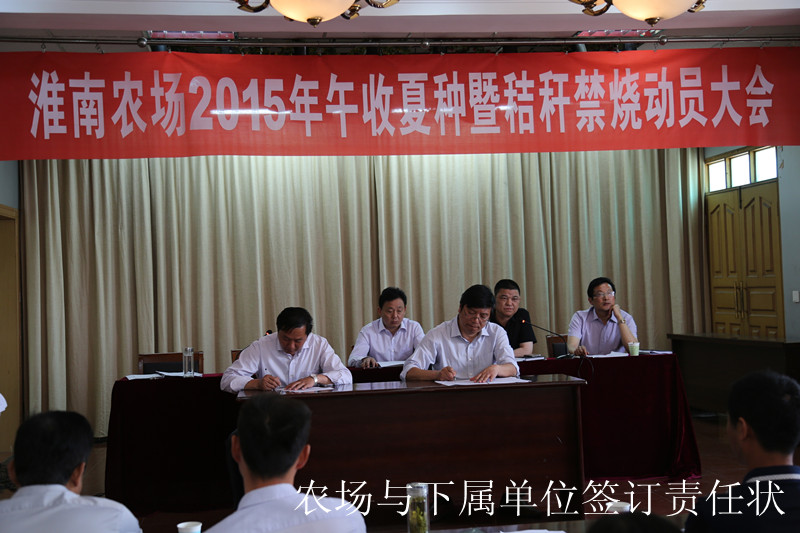 召开全场午收夏种暨秸秆禁烧动员会。场领导姜三豹、宗志贵、安继凤、孙成玉以及全场管理人员、部分职工代表、种粮大户、党员代表、农机手参加会议。会上传达了省农垦集团关于进一步做好2015年秸秆禁烧工作的意见,出台了农场午收夏种工作意见和秸秆禁烧综合利用实施方案,并与场属相关单位负责人签订了责任状。会议强调,午收夏种和秸秆禁烧是当前全场的中心工作,是夺取全年粮食丰收、实现农场增效和职工增收、发展壮大场级经济的重要基础。全场干部职工要认清形势,总结经验,增强责任感;要提高认识,广泛宣传,把握重点,狠抓落实;要健全组织,严明纪律,明确责任,奖罚分明;要加强配合,搞好农业社会化服务,统筹兼顾当前各项工作,确保安全生产。会议要求,全场上下要坚定信心,克服困难,全员参与,团结协作,全面打赢午收夏种和秸秆禁烧综合利用攻坚战。(武晓瑜 王慧 李超 陶雪松 陈永胜等)