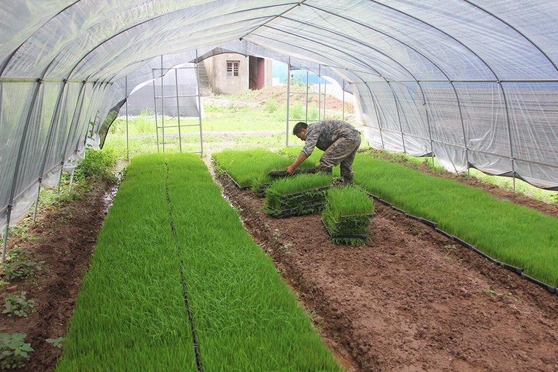 该农场现有农地近10万亩,原以种植棉花为主,2011年开始大面积推广水稻生产,今年计划种植2.45万亩。目前已购置各类水稻插秧机12台,机插秧示范面积200余亩,并首次实施工厂化育秧,具有标准化水平高、育秧成本低、秧苗质量好、节种省工等优点,在水稻生产提升科技含量、实现全程机械化上迈出了重要一步。(唐怀同)