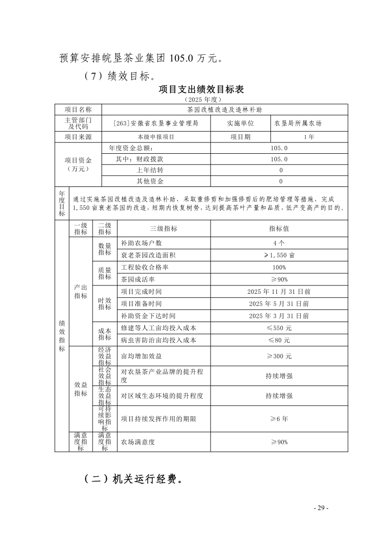 安徽农垦集团:安徽省农垦事业管理局2025年度项目支出绩效目标