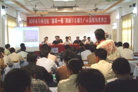 经安徽省农科院绿色食品研究所和安徽省首席水稻育种专家朱启升研究员授权,安徽农垦龙亢种业有限公司独占“绿旱一号”全国生产经营权。作为生产单位,公司负责人在会上汇报了“绿旱一号”的市场营销方案。